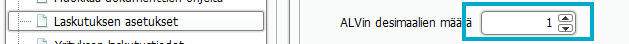 ALVin desimaalien määrä -kohdassa tulee olla vähintää 1.