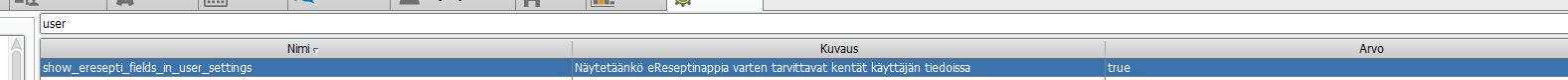 Mikäli toimikorttinumerolle ei ole omaa saraketta. Asetukset- Muut asetukset kohdasta tulee tehdä valinta show eresepti_fields_in_user_settings, ja muutatte arvoksi true
