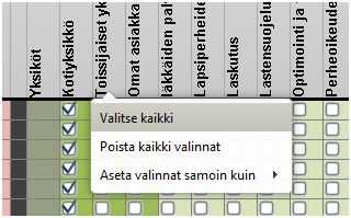 Paina harmaalla pohjalla hiiren oikeaa ja saat valikon valita kaikki tai poista kaikki.