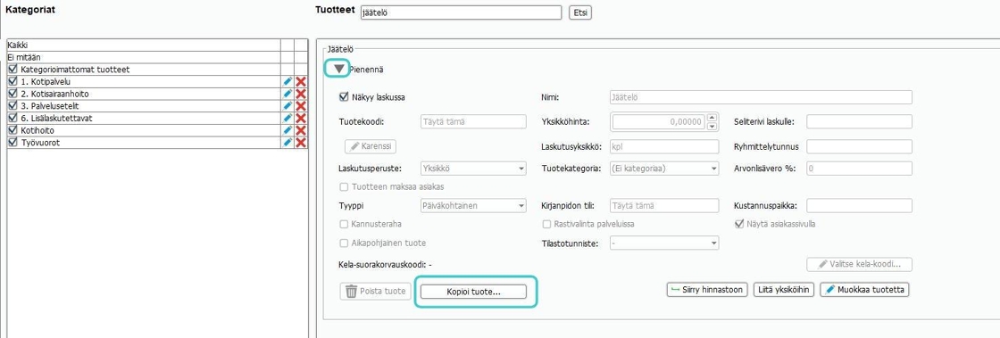 Tip: Vinkki: Palvelusetelituotteet on hyvä tehdä erikseen nimeämällä ne esimerkiksi: "Kotihoito arki aamu PS", koska ne linkitetään palveluseteleihin, mikäli teillä on integraatio meiltä Palseen tai PSOP:iin.
