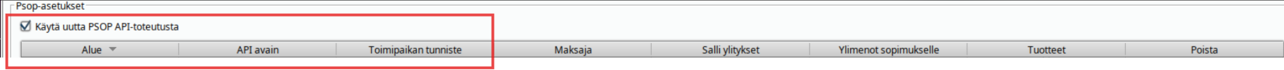 Varmista, että täppä Käytä uutta PSOP API toteutusta on aktiivinen.
