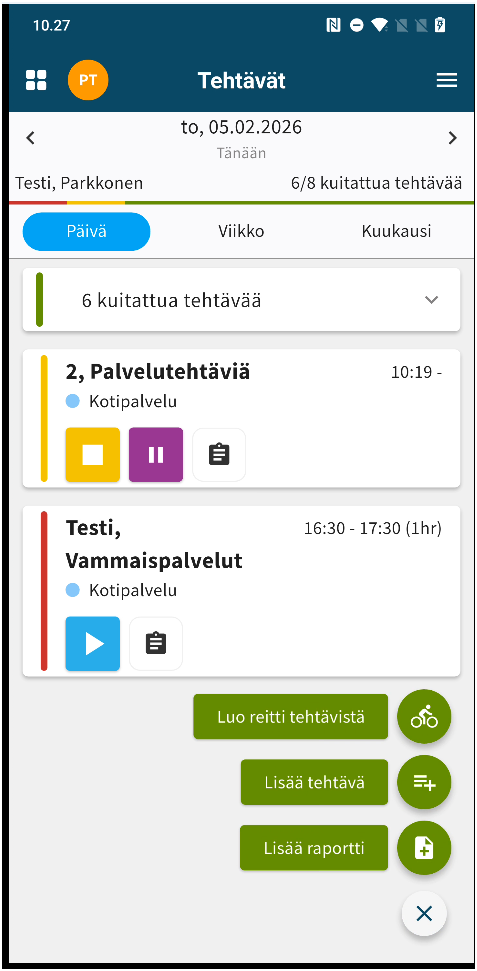 - Tehtävät-näkymässä valitaan vihreästä pallosta Lisää Raportti.