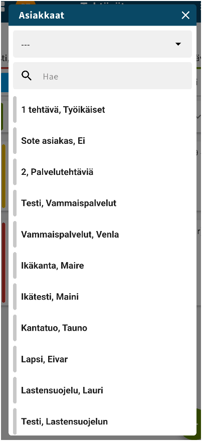 Valitse asiakas