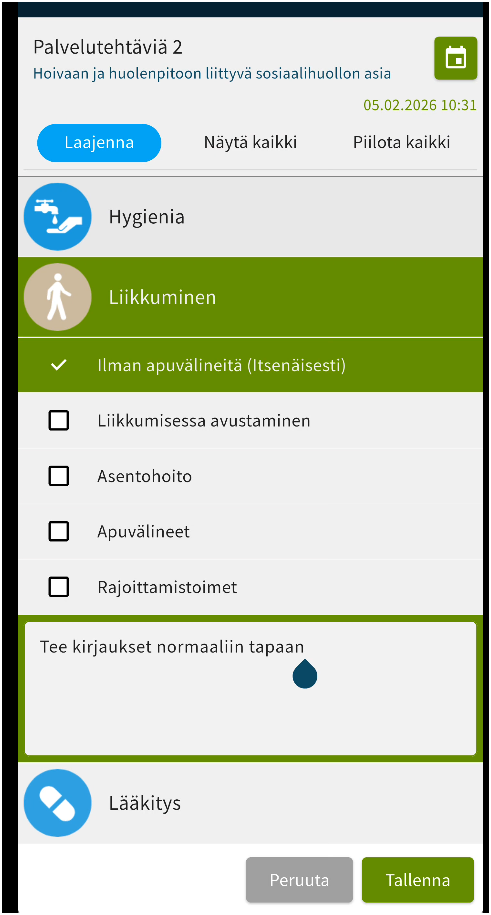Tehtävää kuitattaessa kirjauksen pystyy myös ohjaamaan sosiaalihuollon varantoon meneväksi.