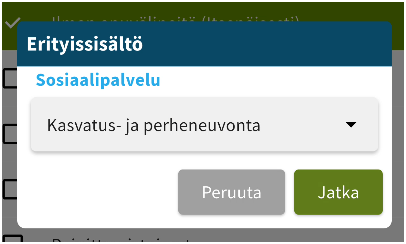 Seuraavassa kohdassa valittavaksi tulee sosiaalipalvelu, johon kirjaus ohjataan.