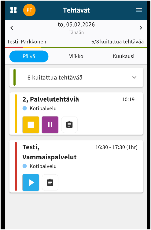 Mobiili päivittyy lähipäivinä, jotta kirjauksia voi sieltä tehdä. Siihen asti kirjaukset tehdään DC2 selaimella.