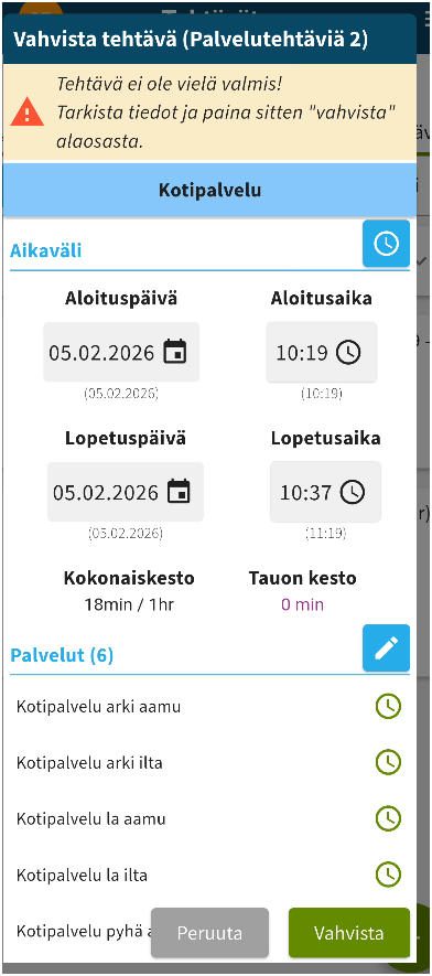 ja seuraavassa näkymässä valitset vahvista sen jälkeen, kun olet muuten tarkistanut, että ajat yms. ovat oikein