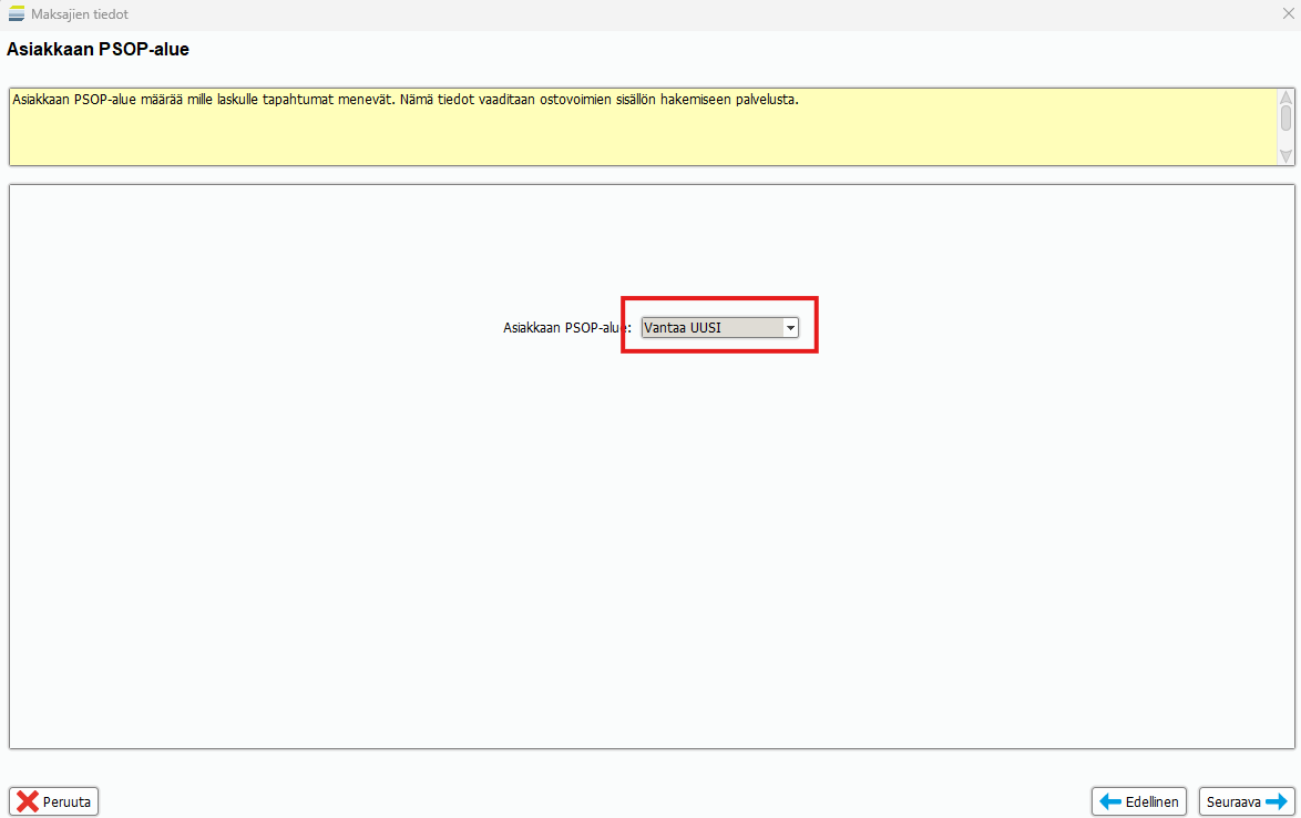 2. Määritä Asiakkaan PSOP-alue ja klikkaa seuraava