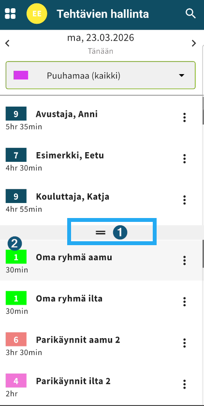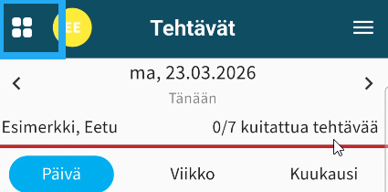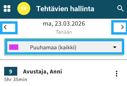 - Oletuksena näkyy kuluvan päivän tehtävät