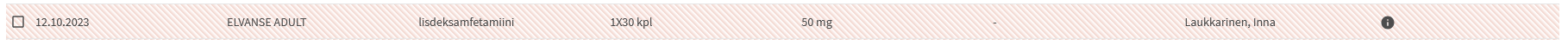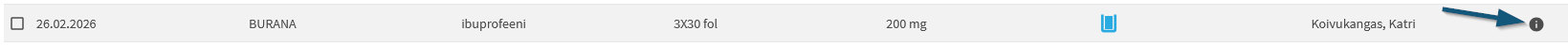 Reseptin tietoja voit tarkastella jokaisen lääkkeen rivin lopussa olevasta i-kuvakkeesta