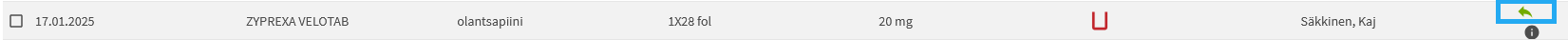 Sininen kuvake = lääkettä ei ole vielä toimitettu
