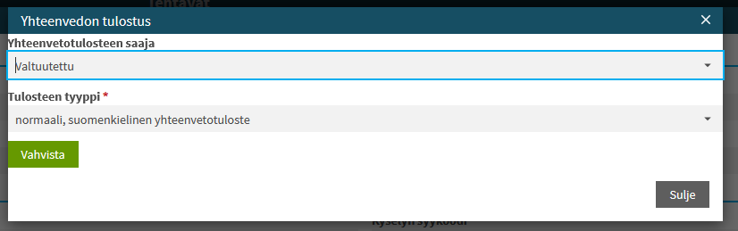 Yhteenvetotuloste-toiminnolla voit tulostaa yhteenvedon valitsemistasi lääkkeistä.