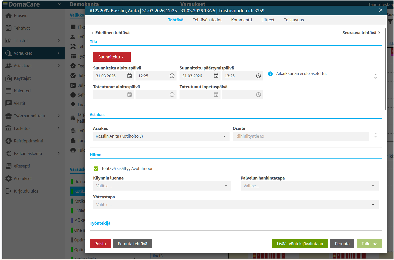 Asiakkaan tehtävät