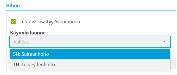 Tehtäville lisätään täppä tehtävä sisältyy Avohilmoon (THL vaatimus)